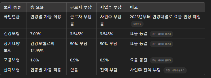 »çȸº¸Çè¿äÀ²Àº À§ Ç¥¿Í °°À¸¹Ç·Î »ç¾÷ÁÖ´Â ÀÓ±ÝÀÇ 11% °¡·®ÀÇ ºñ¿ëÀ» ºÎ´ãÇÏ¿©¾ß ÇÕ´Ï´Ù.
